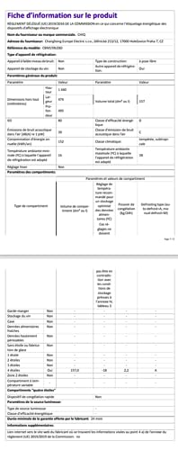 stockage de 187 litres pour le réfrigérateur et 75 litres pour le congélateur. Un volume utile total de 262 litres