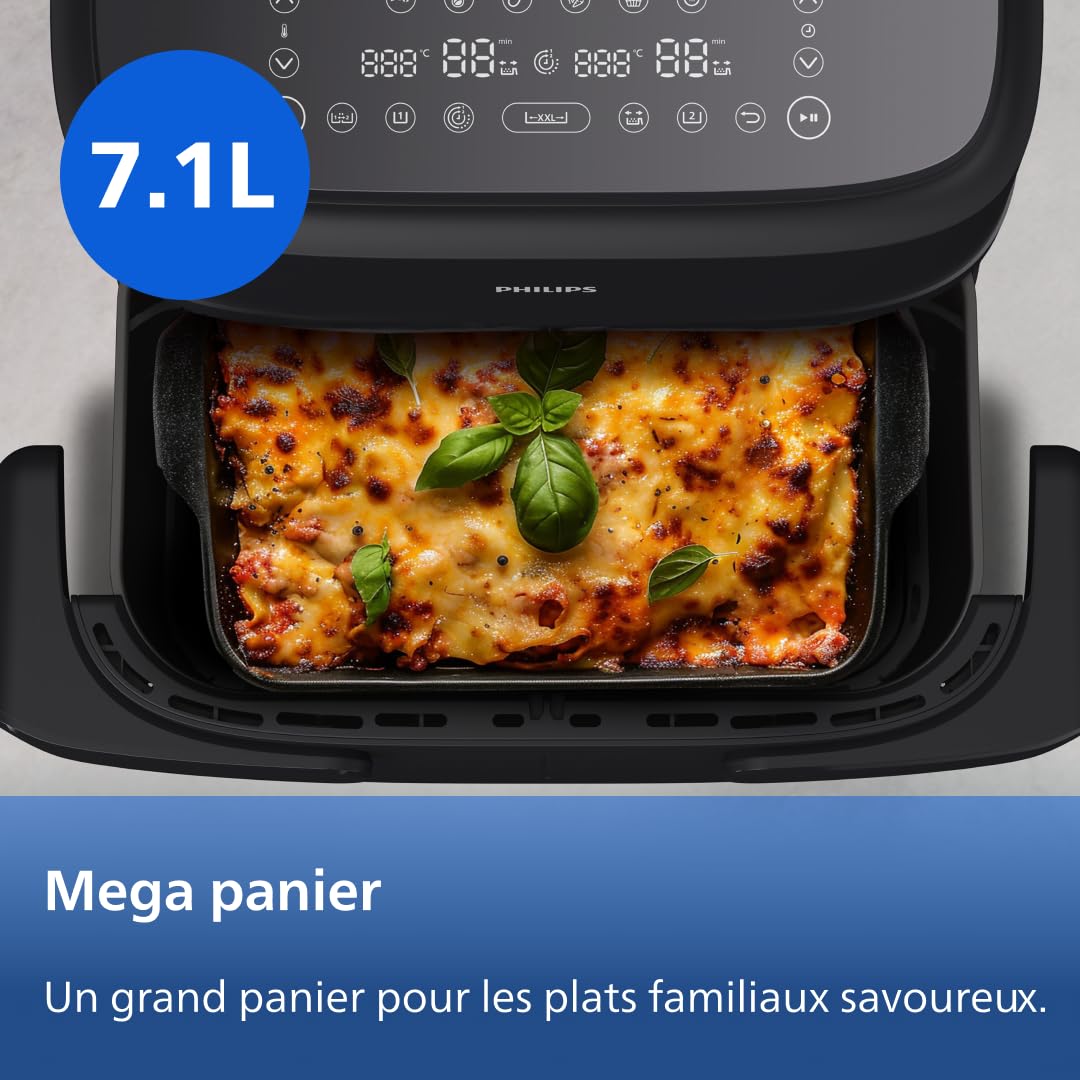 Air Fryer Série 1000 Panier Flexible avec Séparateur Amovible - Airfryer 7.1L, Technologie RapidAir, 10 Modes de Cuisson, 90% Matières Grasses en Moins(NA154/00)