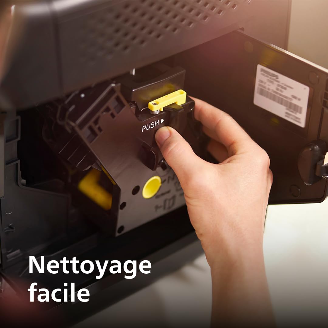 UNE MOUSSE TRÈS SOYEUSE : le système LatteGo prépare automatiquement une mousse de lait onctueuse pour vos cafés au lait avec différents types de lait. Le LatteGo est le système à lait le plus rapide à nettoyer de tous les temps : 2 pièces, pas de tubes